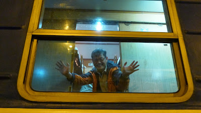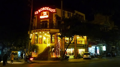 回到河内的時候,那只好坐在賓館前面等開門了。