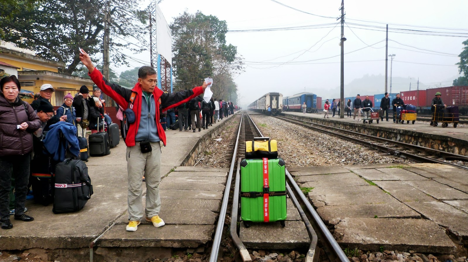 並在國境車站老街站經中越河口鐵路大橋,