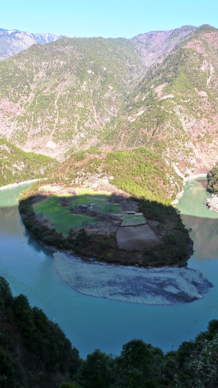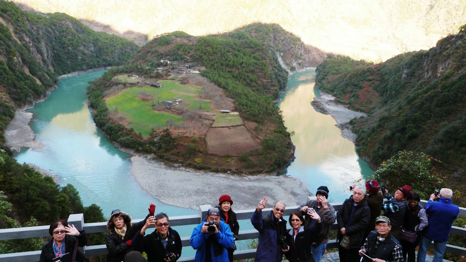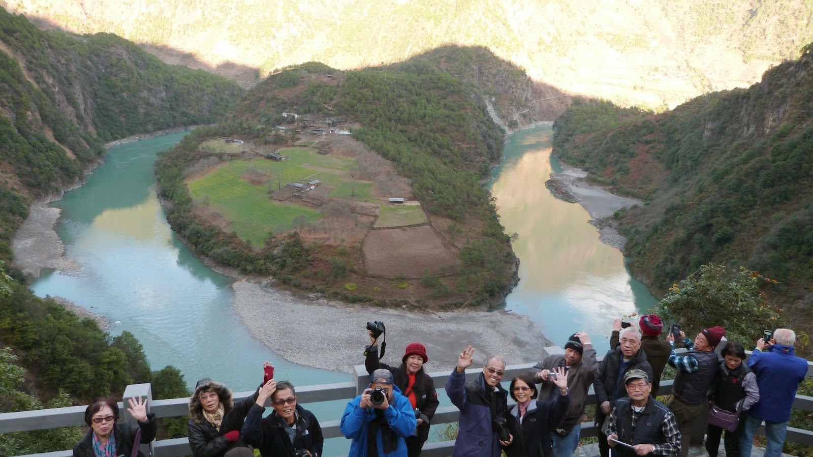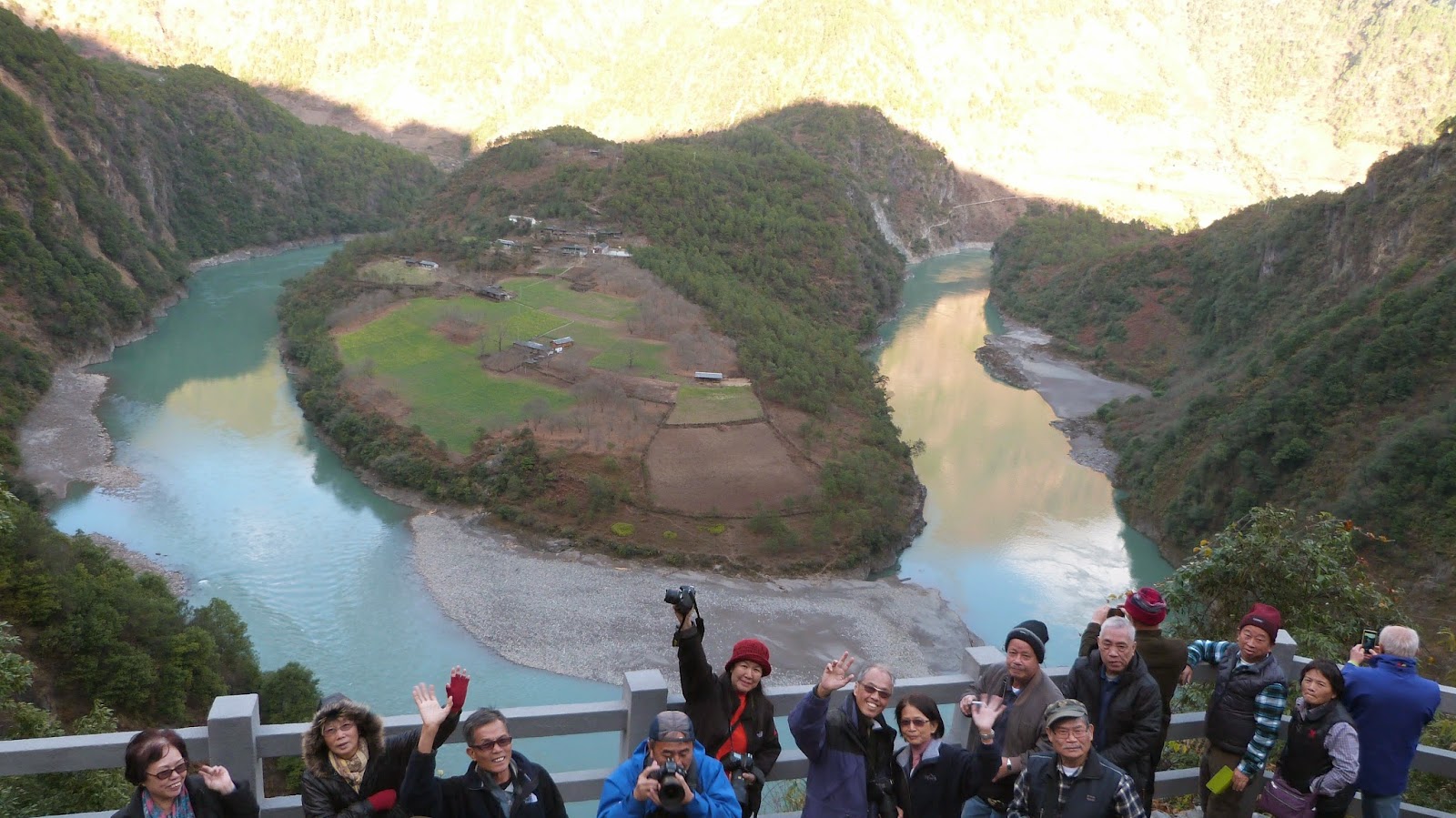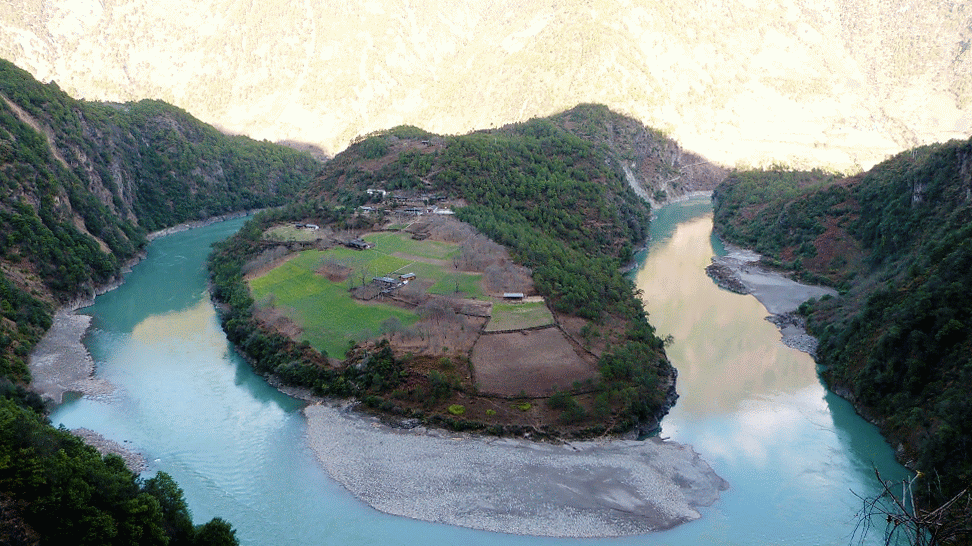 在這裡形成了一個半圓形大灣,為怒江第一灣。
