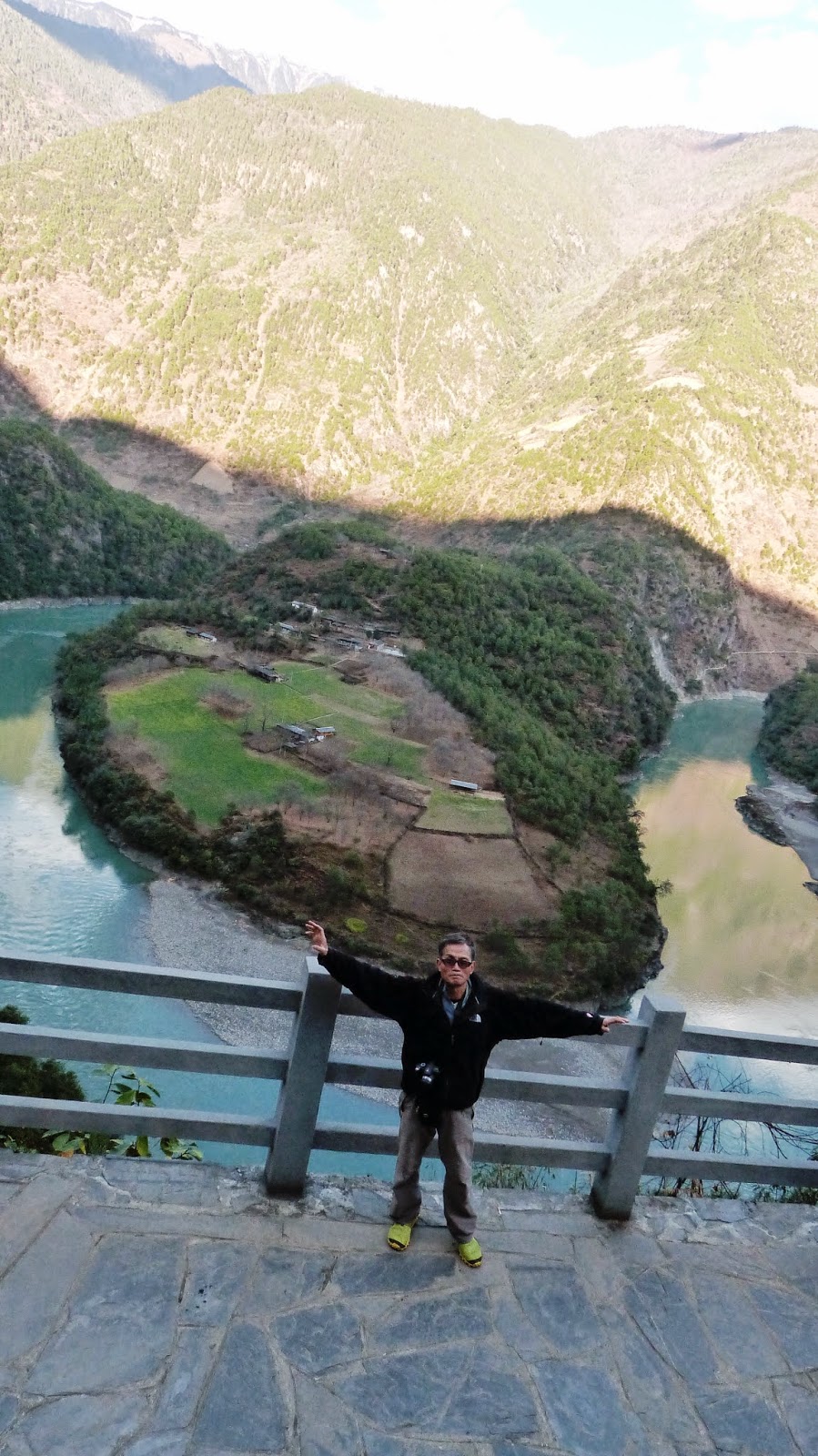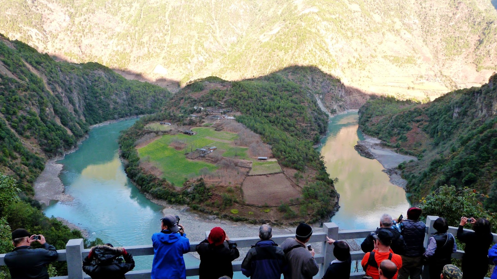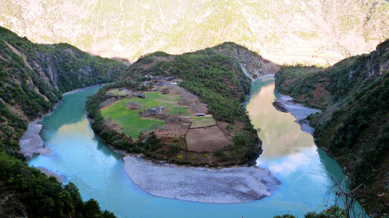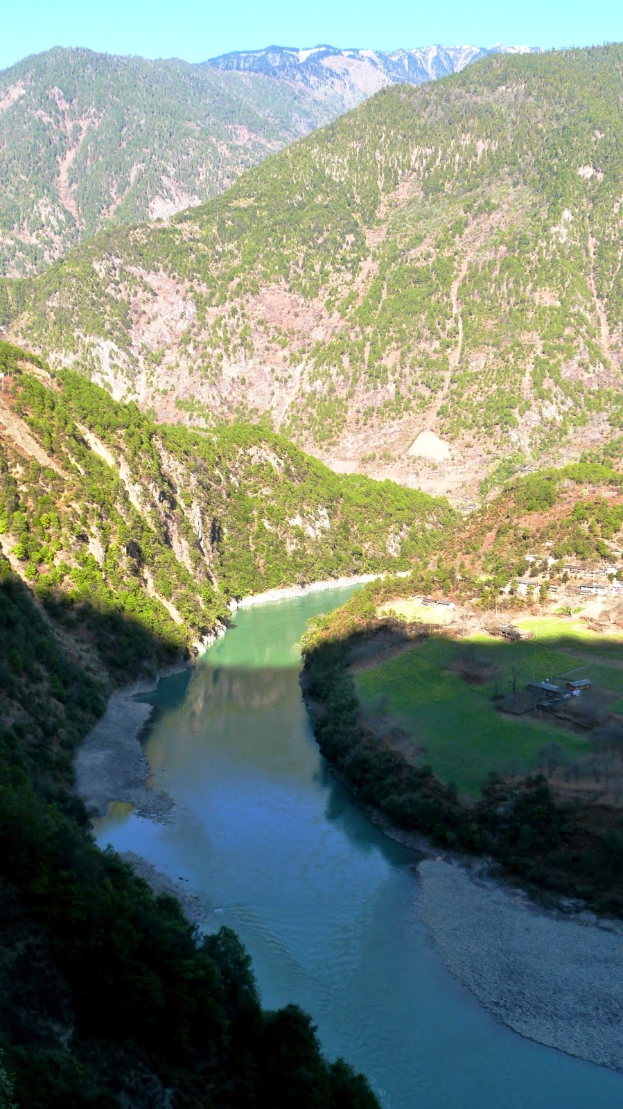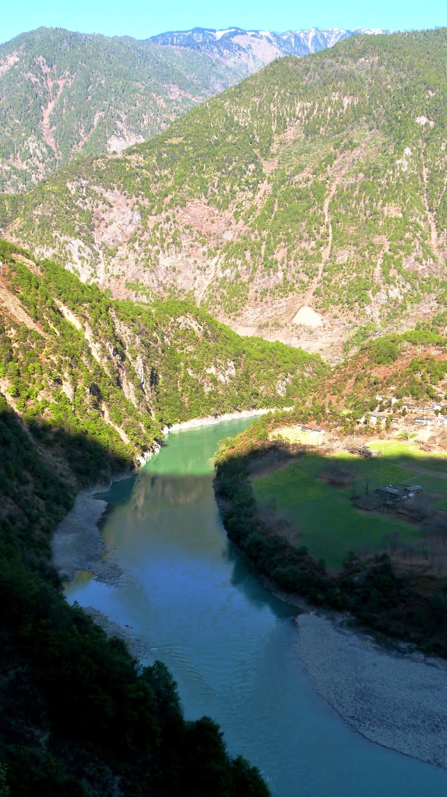 在這裡形成了一個半圓形大灣,為怒江第一灣。