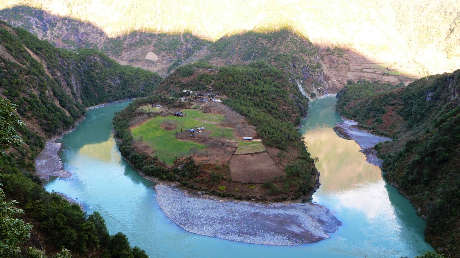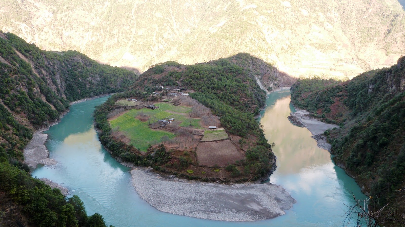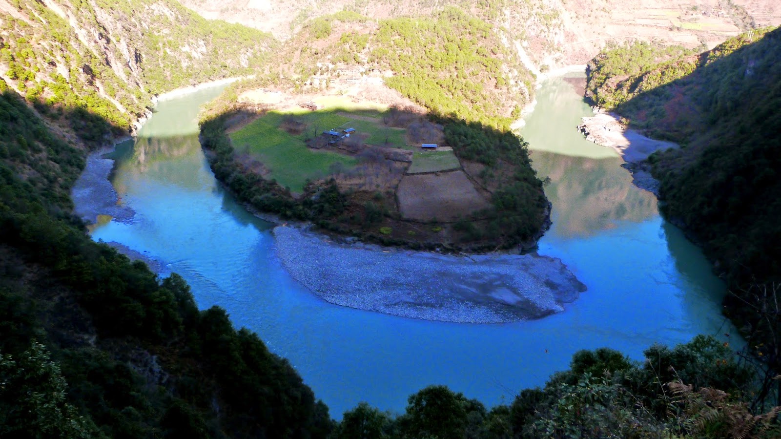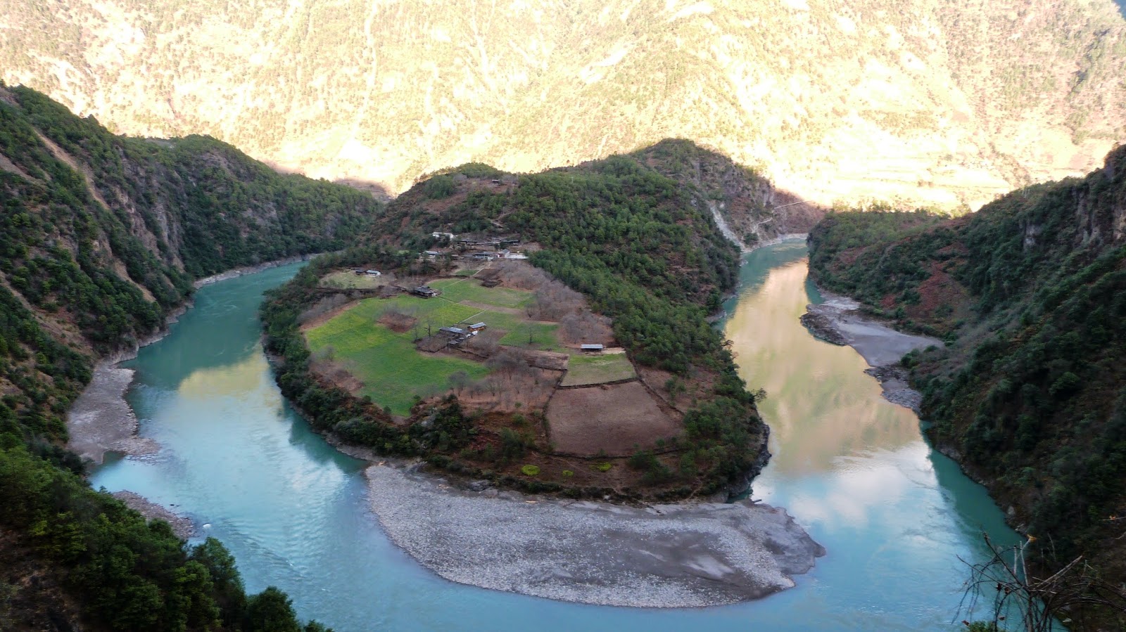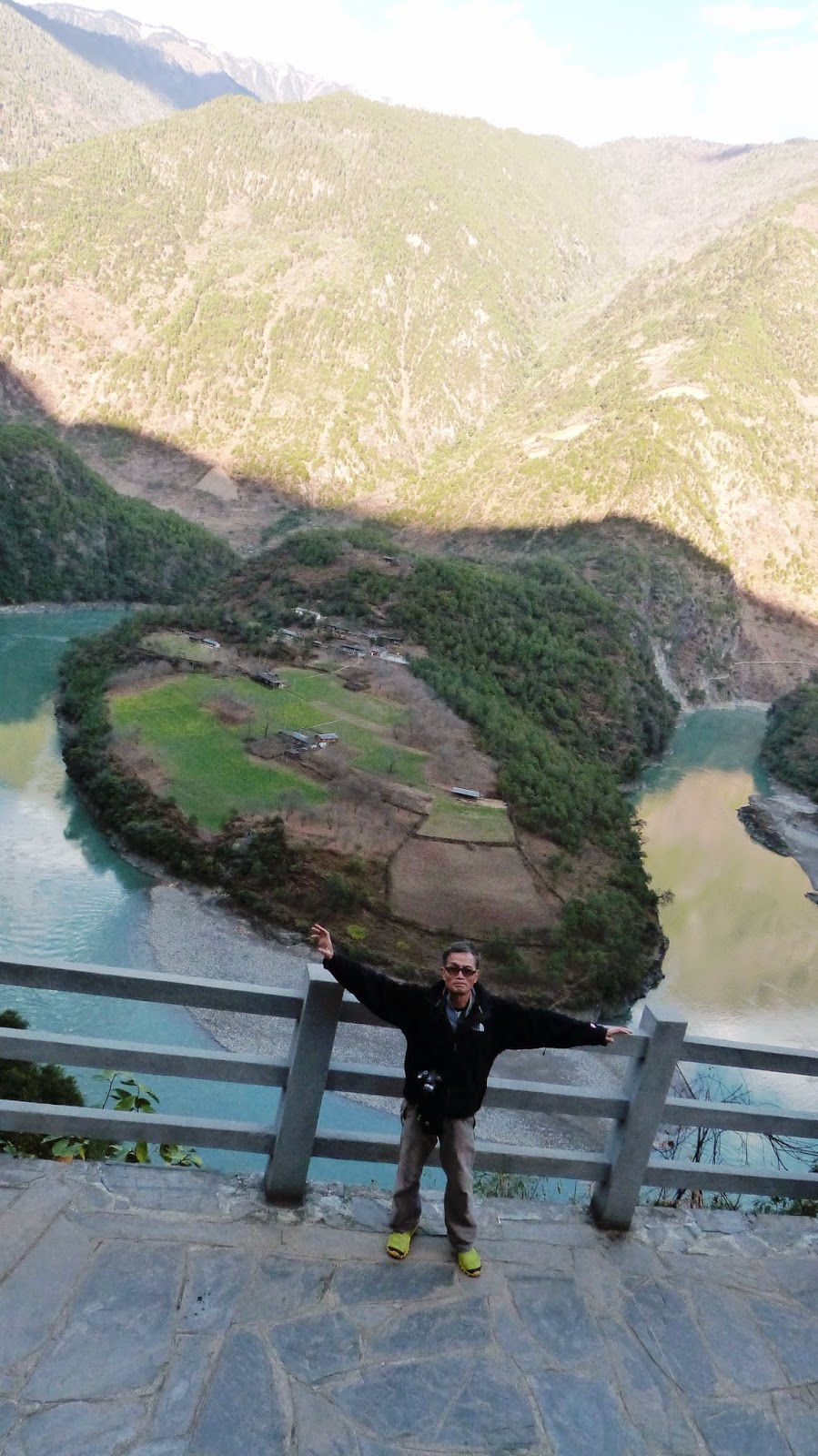 在這裡形成了一個半圓形大灣,為怒江第一灣。