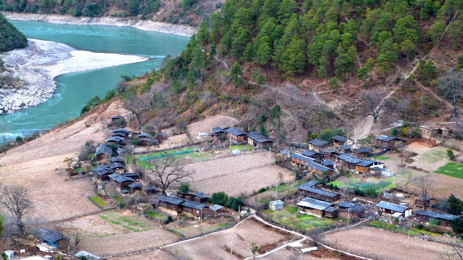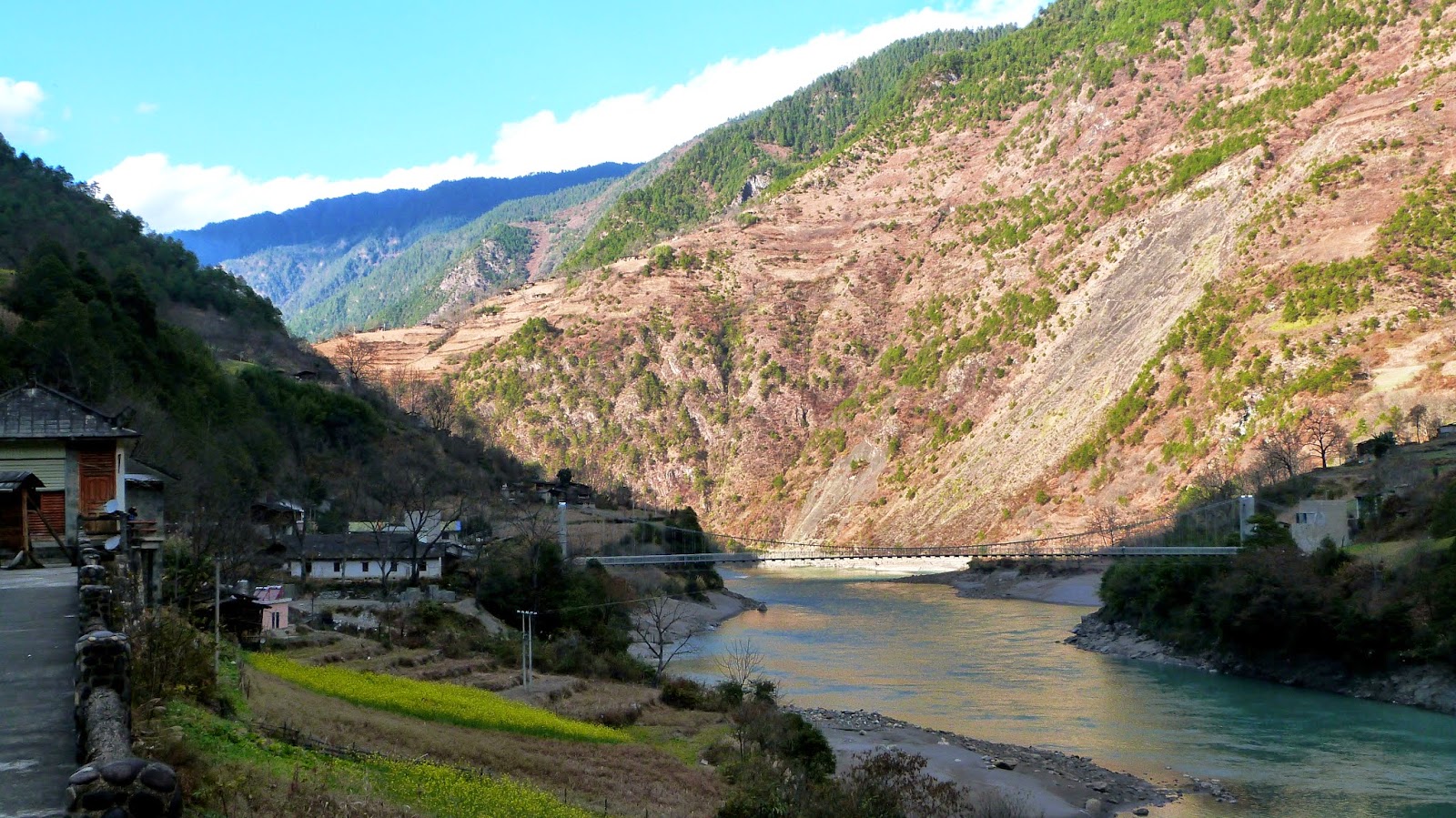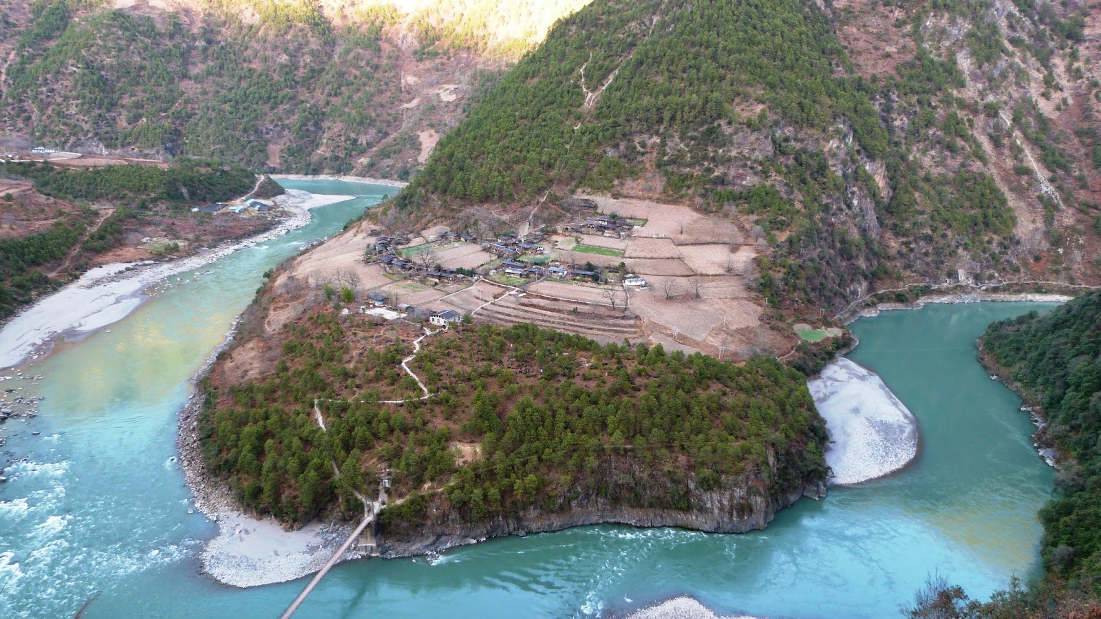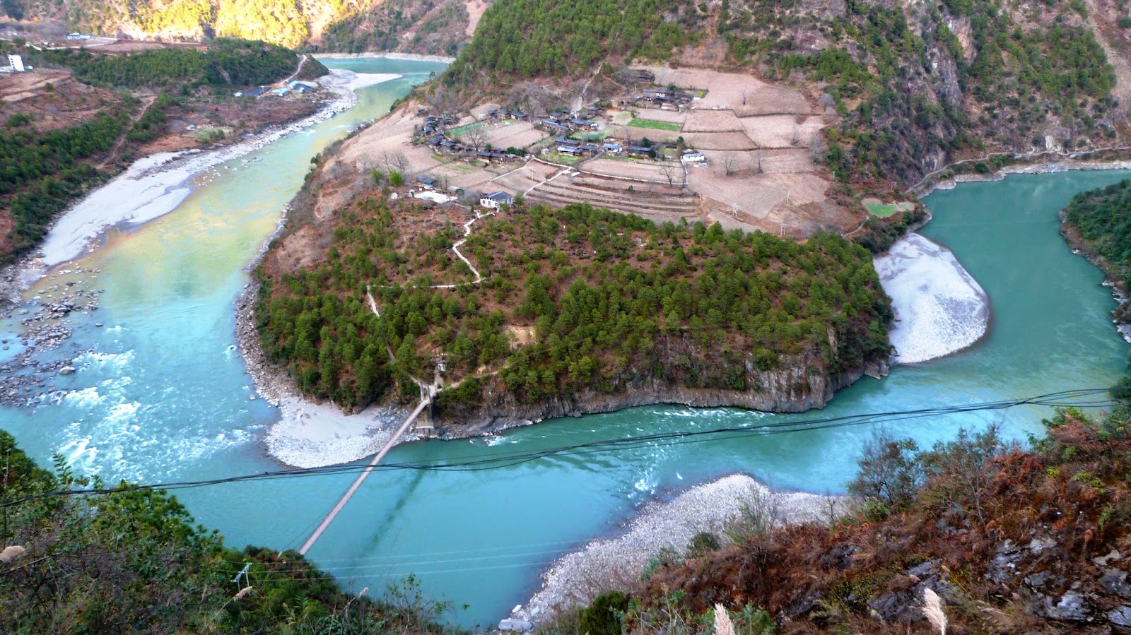 怒江流經雲南貢山縣丙中洛鄉日丹村附近,由於王箐大懸岩絕壁的阻隔,