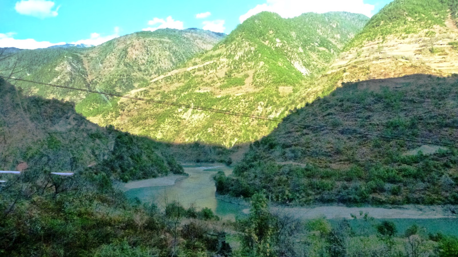 兩山夾一江,形成明顯的高山峽谷地貌。