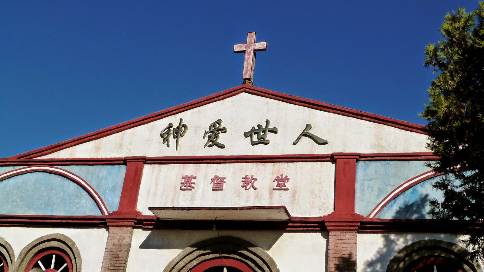 和标志性的哥特式尖塔,甚至也没有管风琴等乐器,有的只是长条凳和红漆木窗。