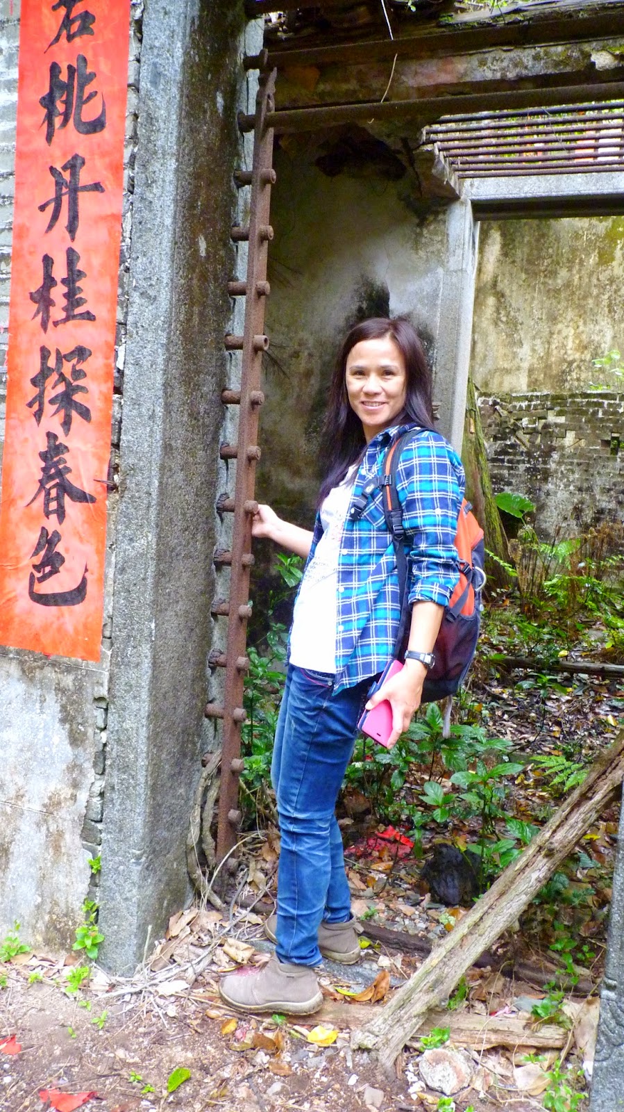 在榕樹凹廢村前有一路標指示往谷埔