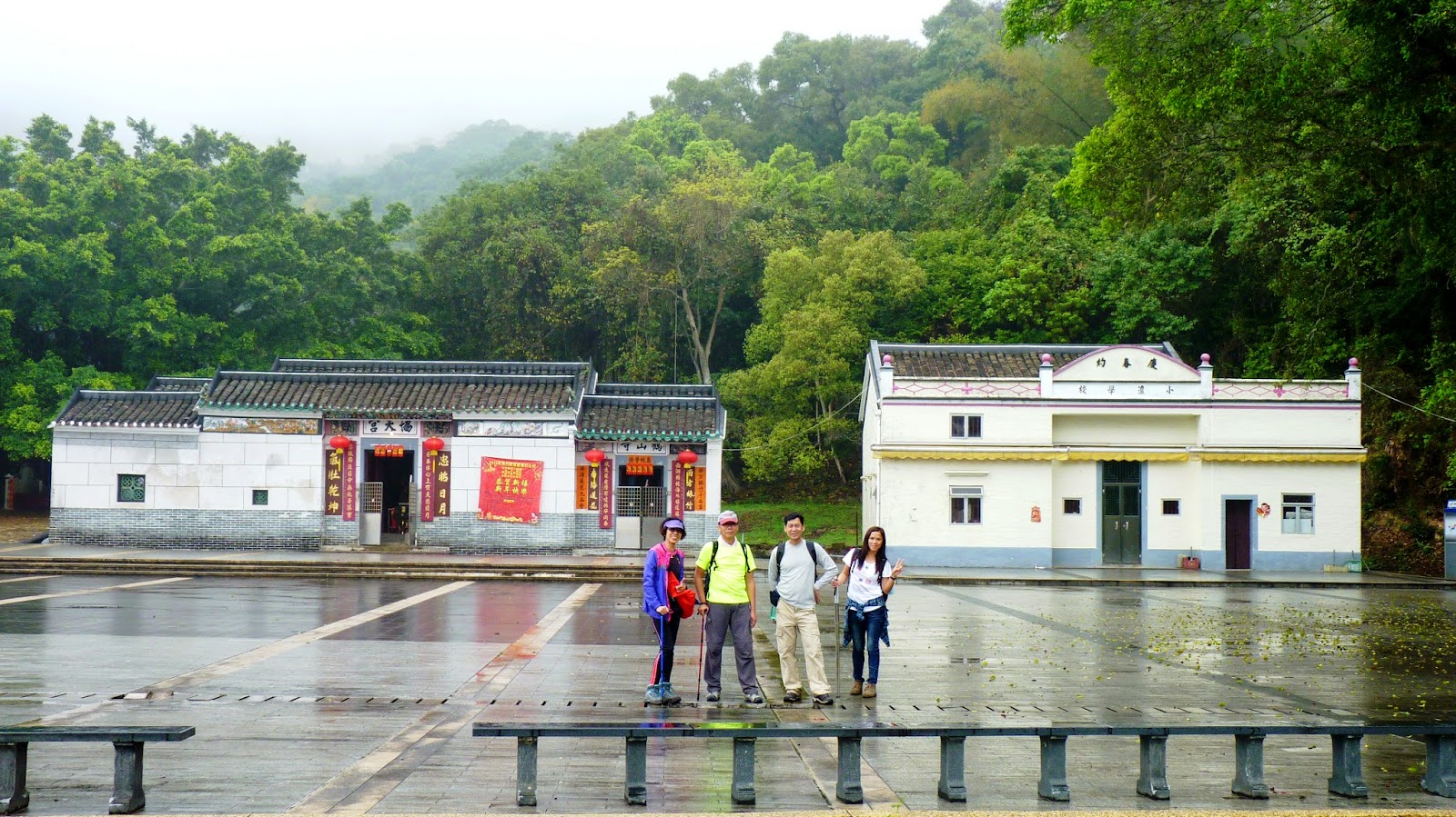 | 具二百多年歷史的天協宮及鶴山寺守護在村前廣場 |