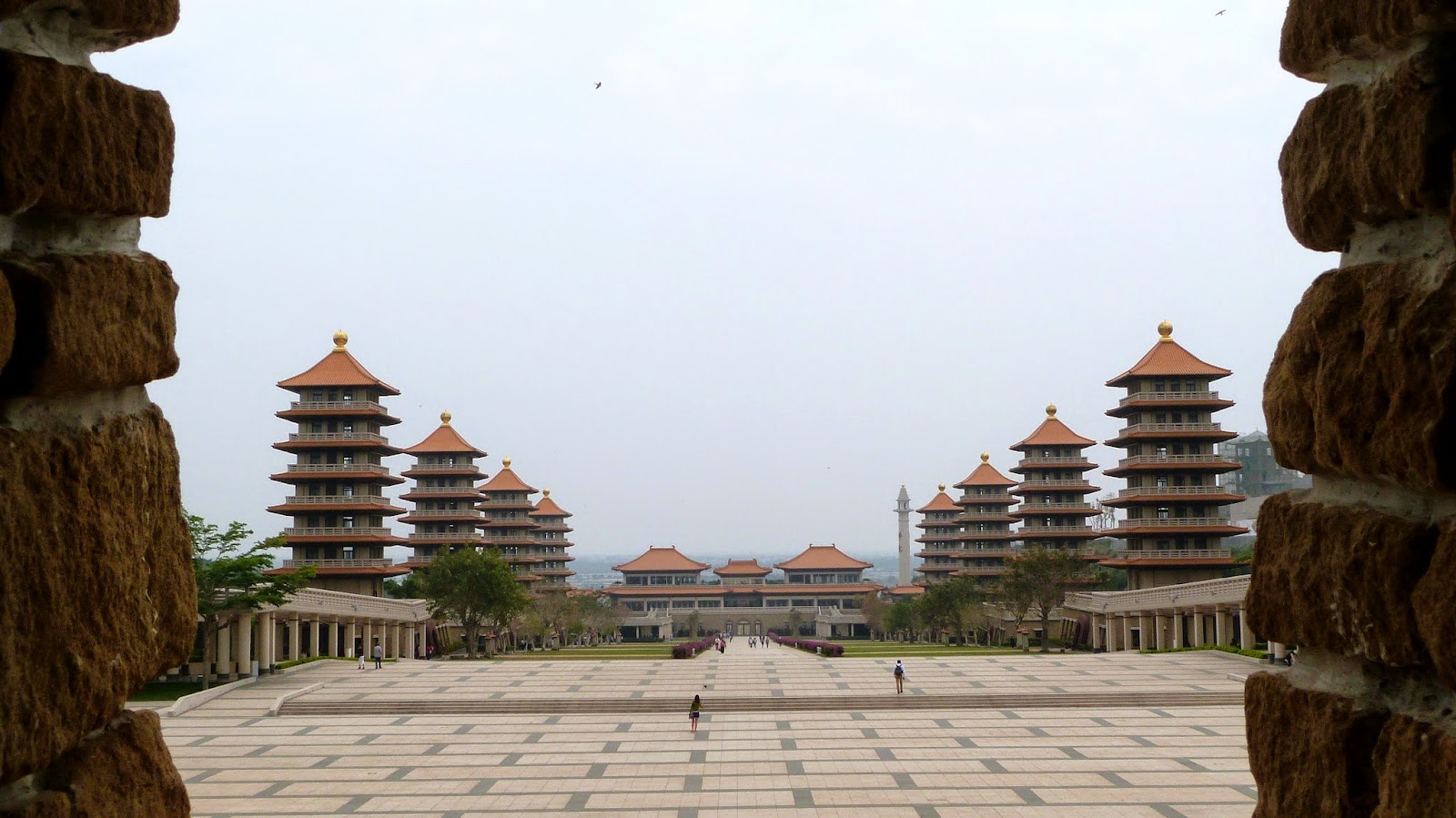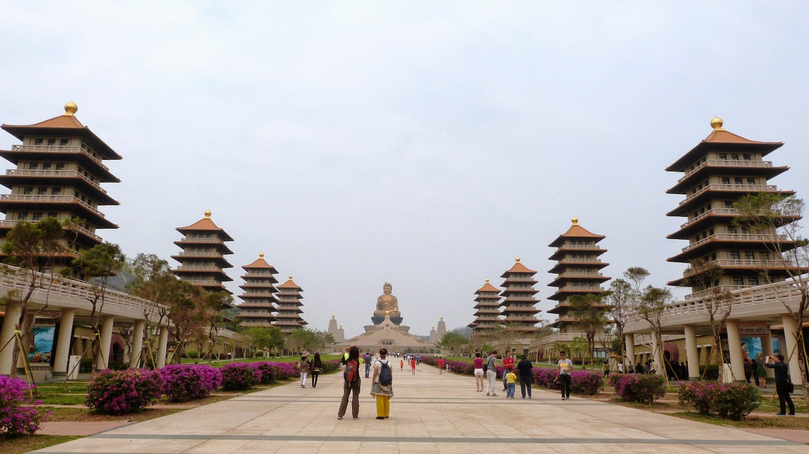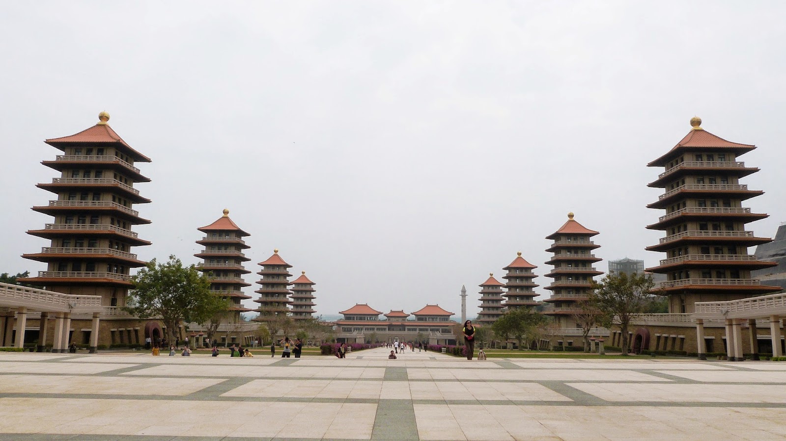 從東至西依序有禮敬大廳、八塔、萬人照相台、菩提廣場、本館及佛光大佛等。