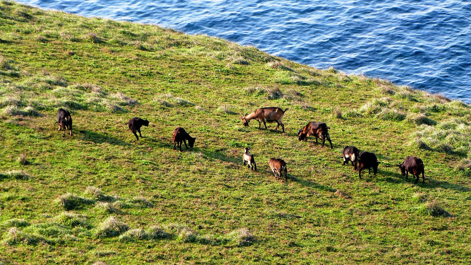 山羊和牛群在上頭優閒地吃著草,田園風光盡收眼底。