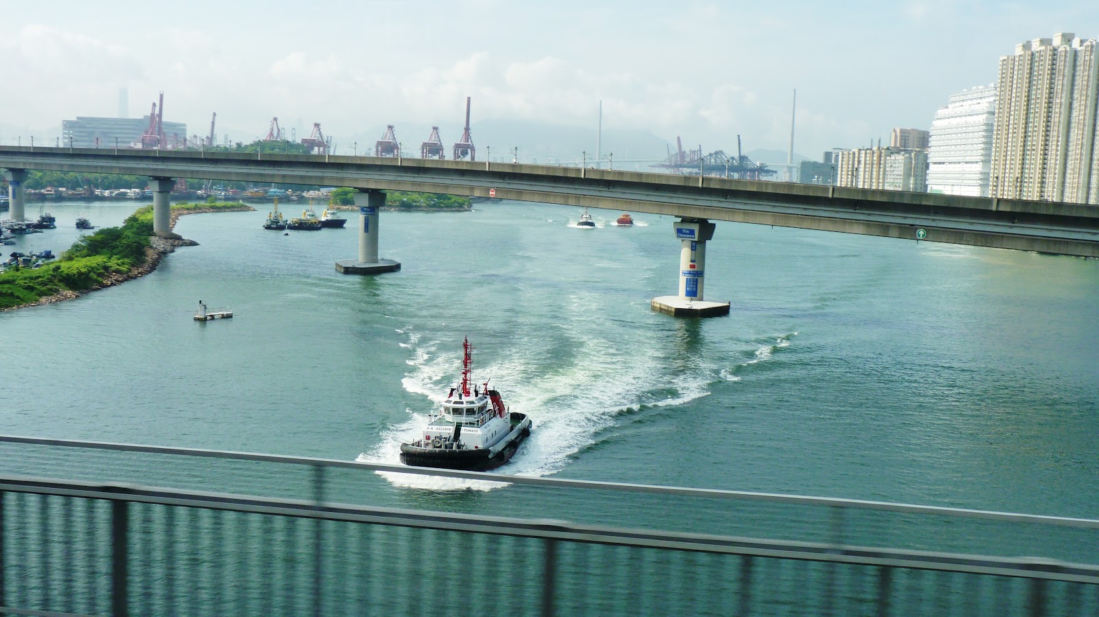 受颱風影響無法繼續行程,遂於昂船洲對開海面錨泊。
