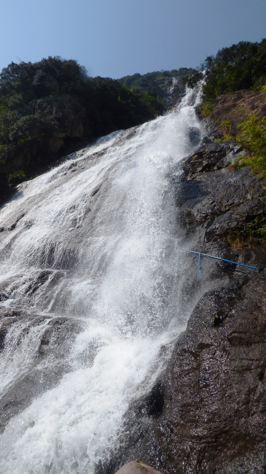 而在登山過程中,手腕粗的水管隨處可見。