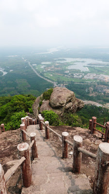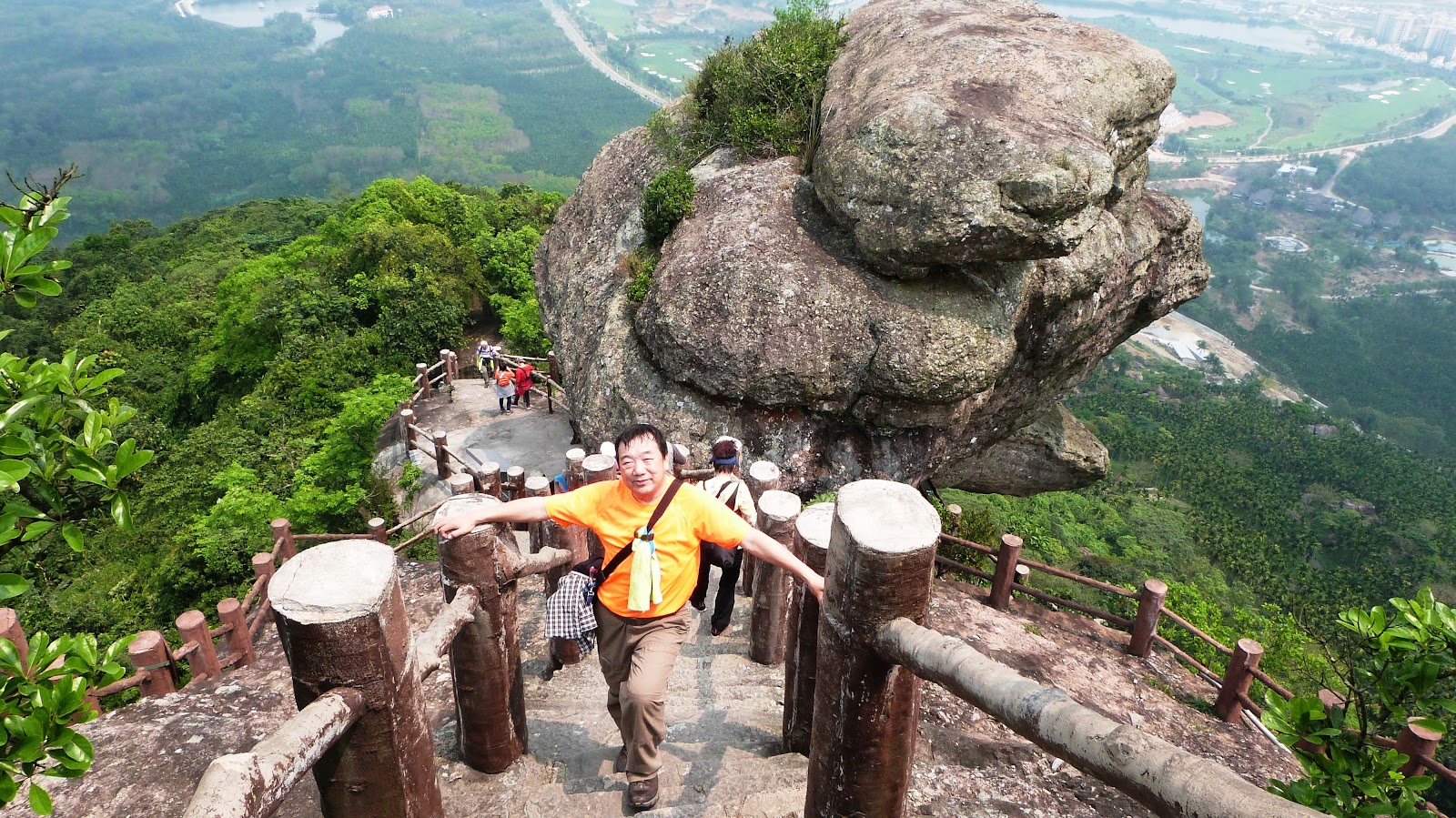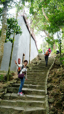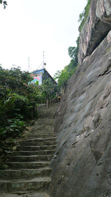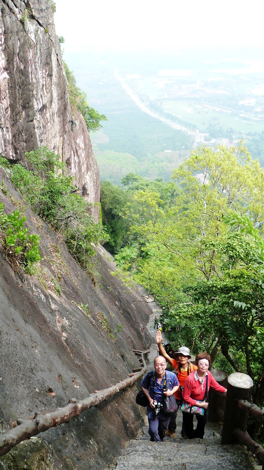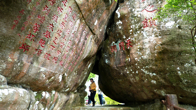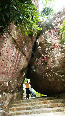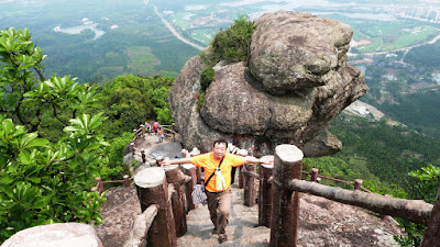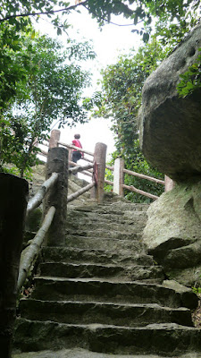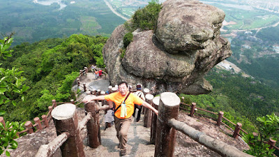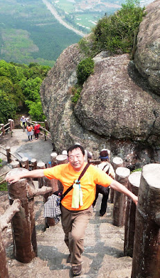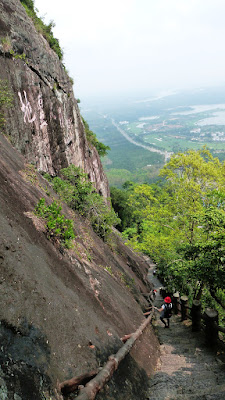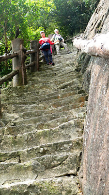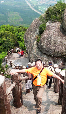 嶺有1308級登上石階貼崖而上,