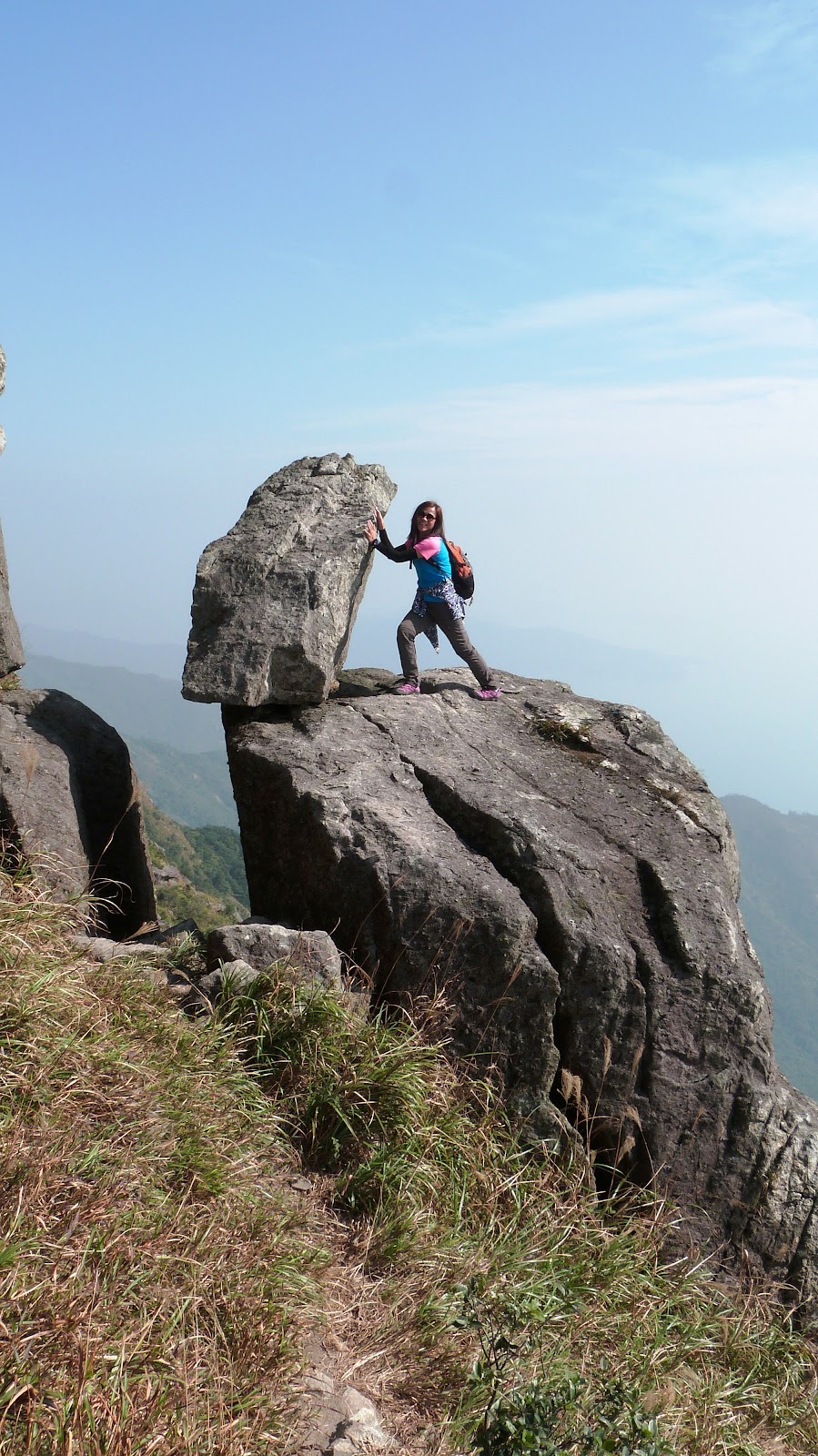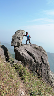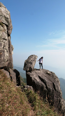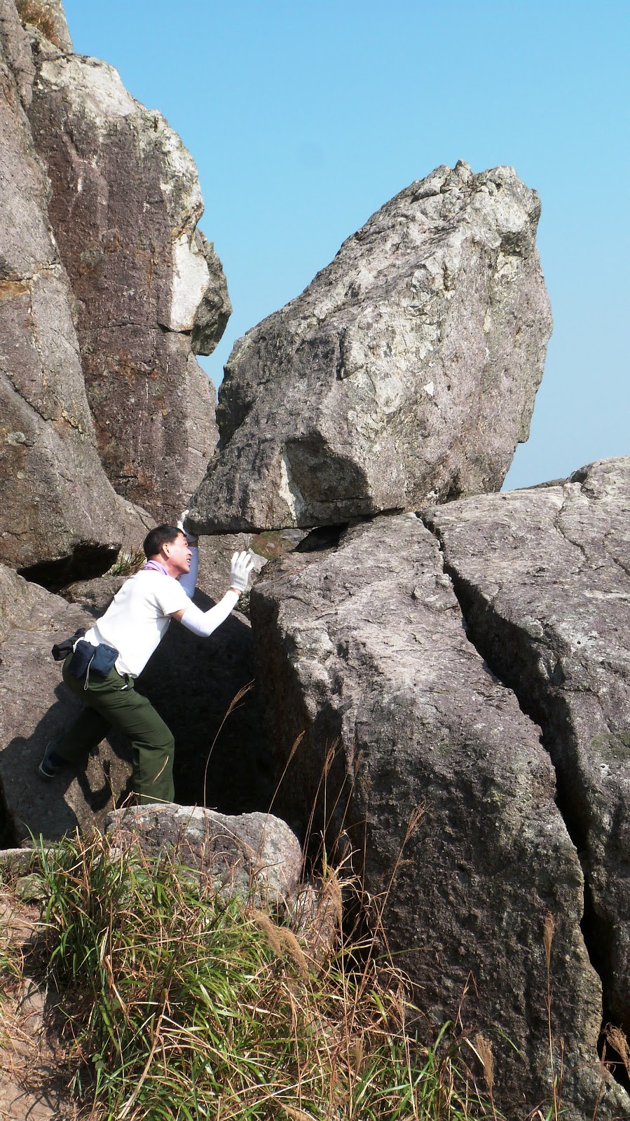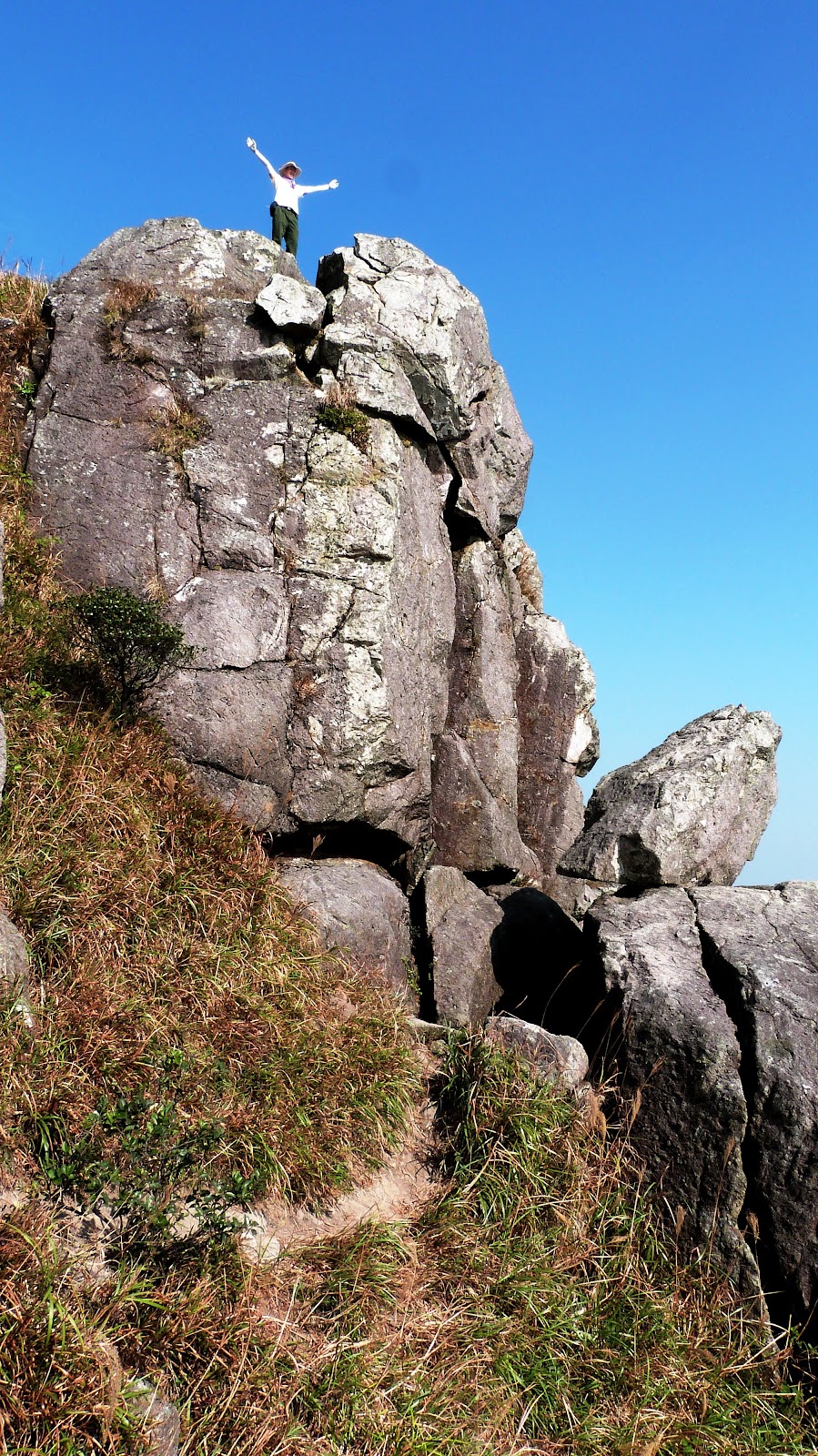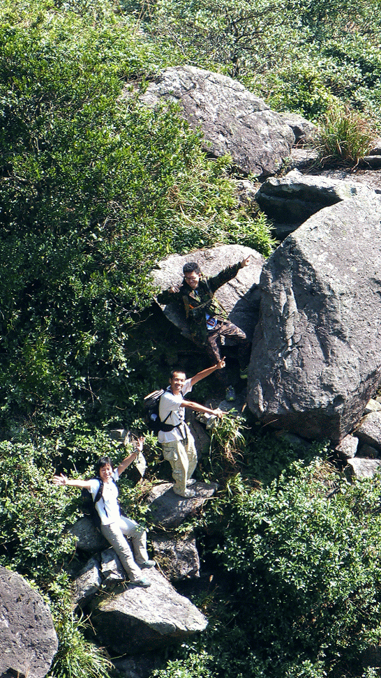 下降「鳳喙臺」,路況乾爽,尚算輕易,翻過石脊,名曰「刀片石」。