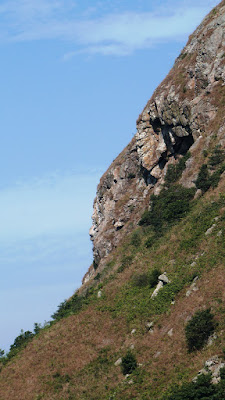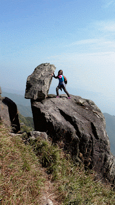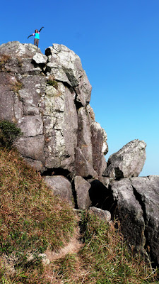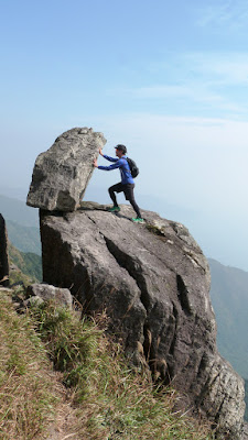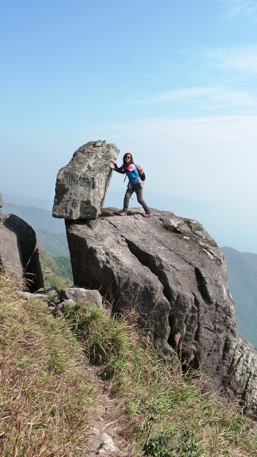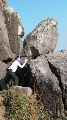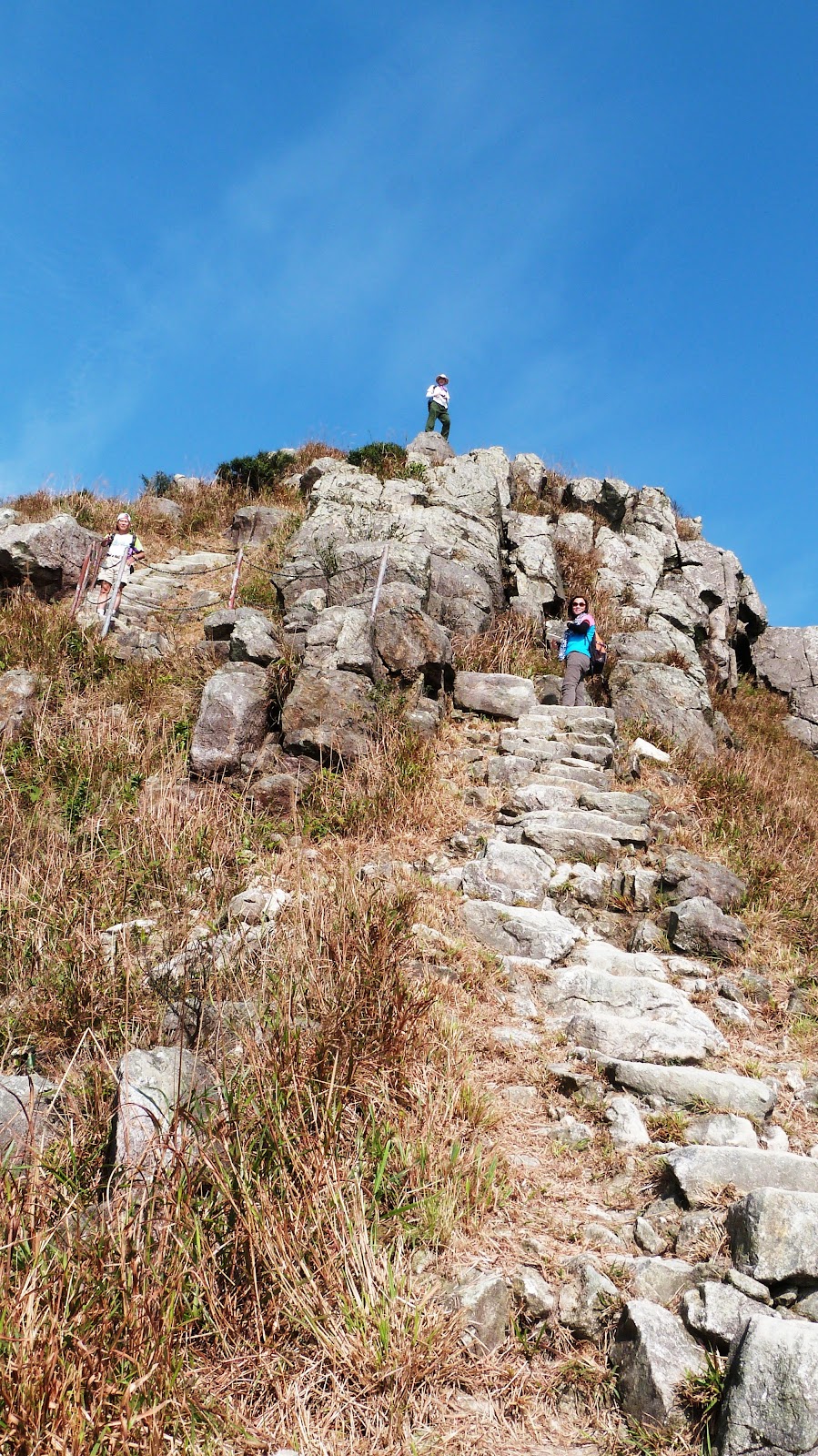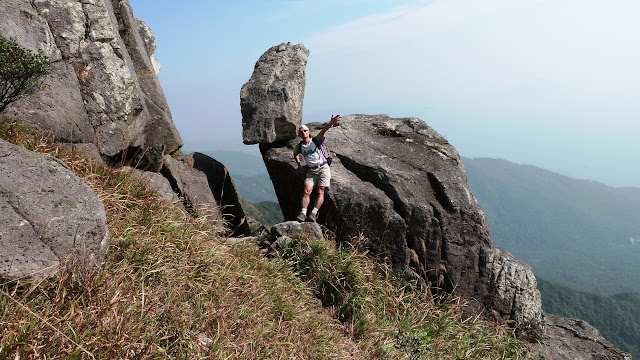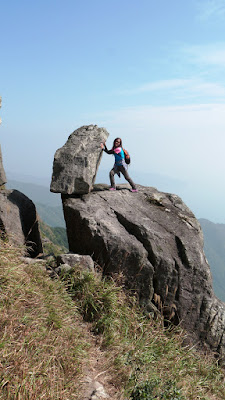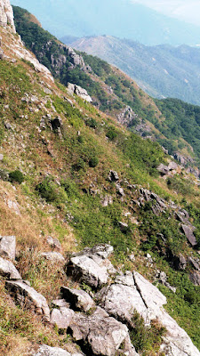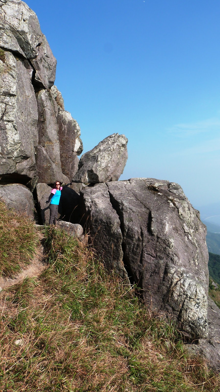 下降「鳳喙臺」,路況乾爽,尚算輕易,翻過石脊,名曰「刀片石」。