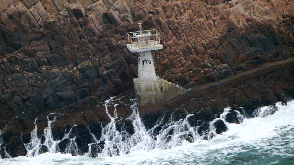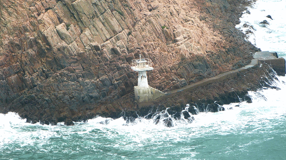 哈哈奇石尖洲臉,大浪四灘隔海對;