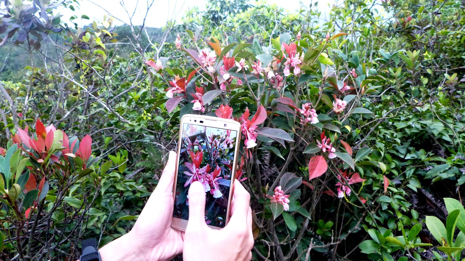 | 麥二段西灣山亭一帶吊鐘花含苞待放 |