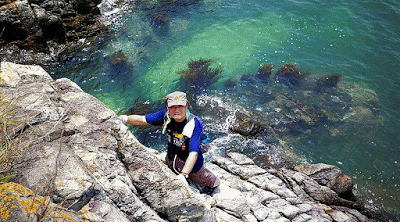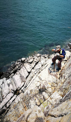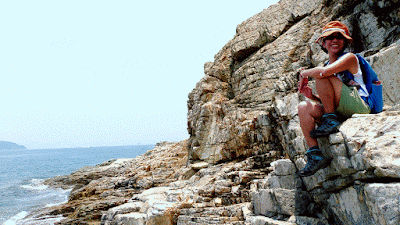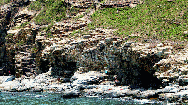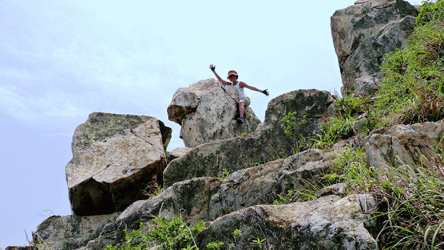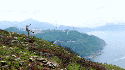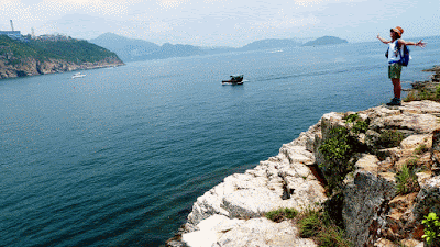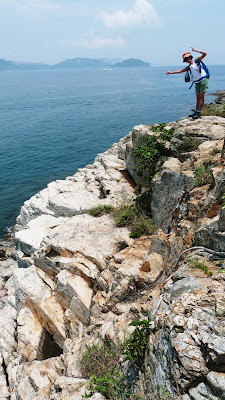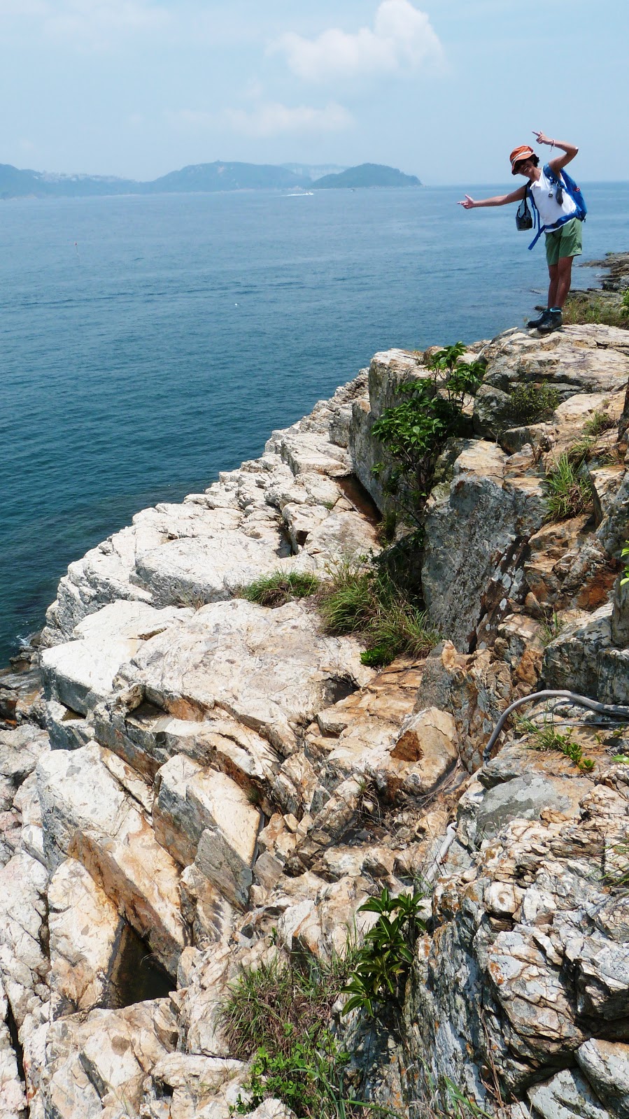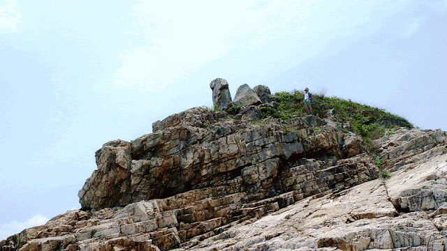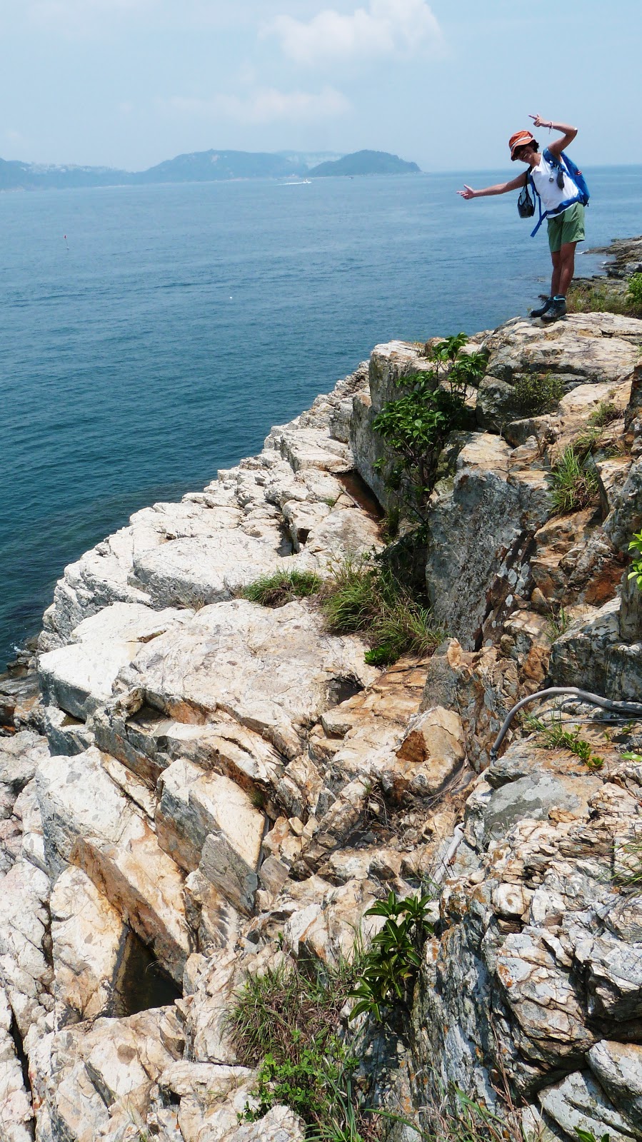大致沿山脊往鴨脷排南端方向行走,再下降至岸邊燈塔。