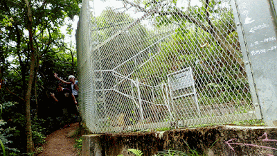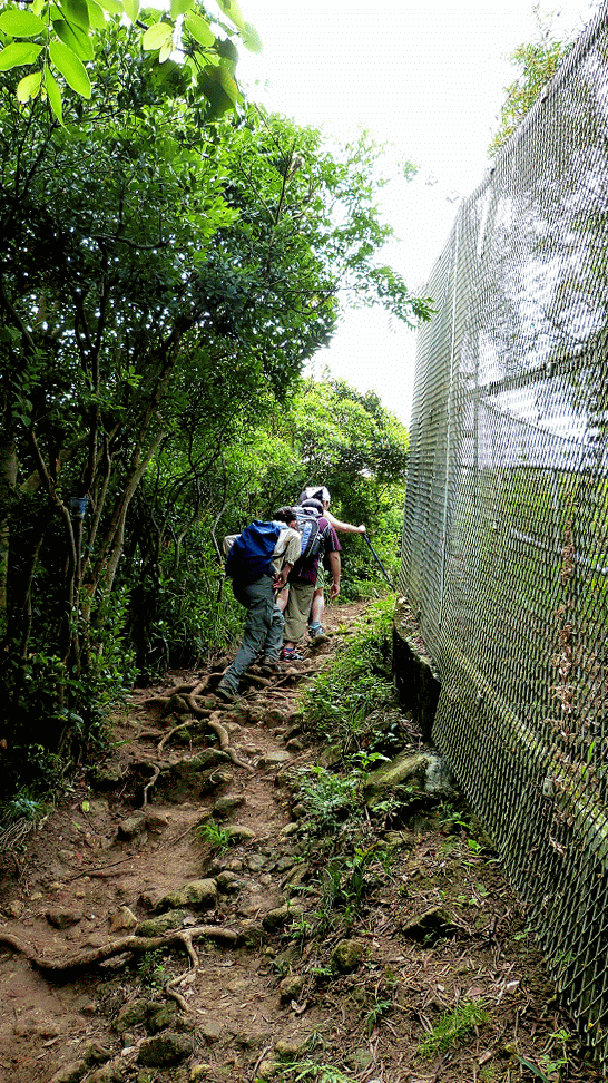在第三條水泥梯級右轉上走,再循圍網側的山徑上升。