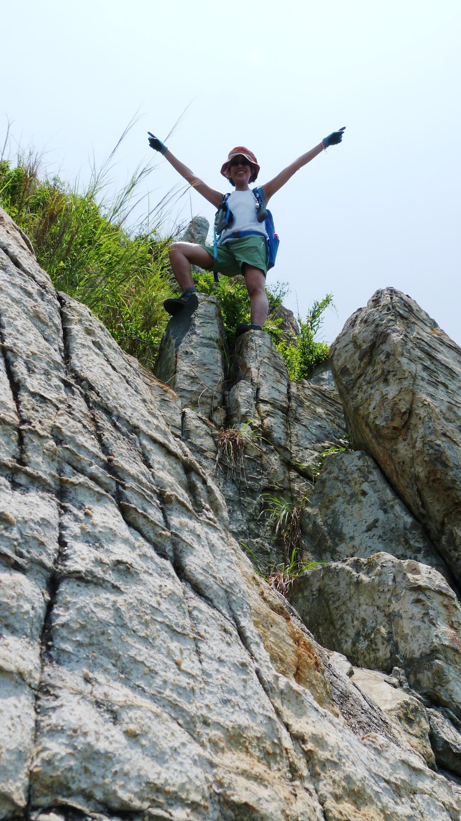 在隨後的分支左走,沿裝設繩索的崎嶇山徑攀登至玉桂山。