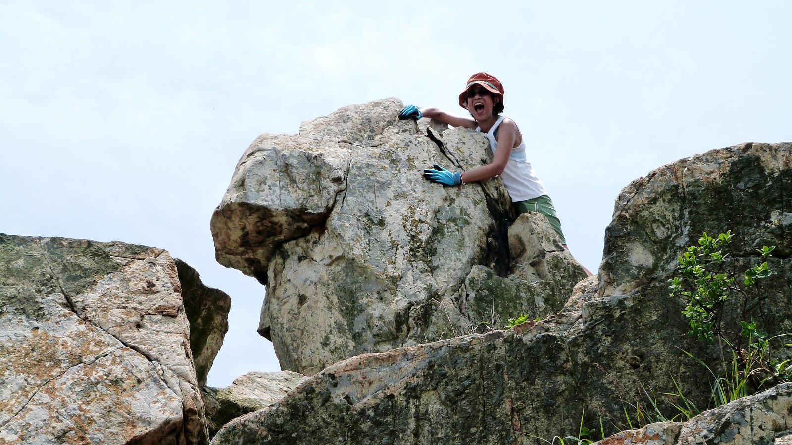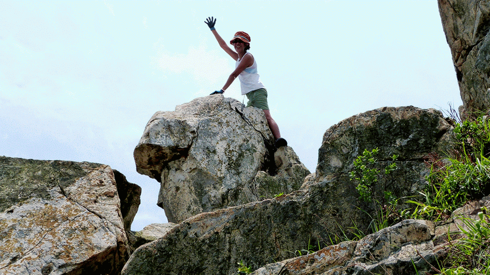路斜石碎步難移,苦盡甘來把山攀;