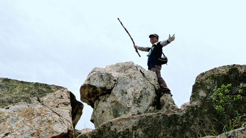 要攀上玉桂山並非易事,路徑只有一條。