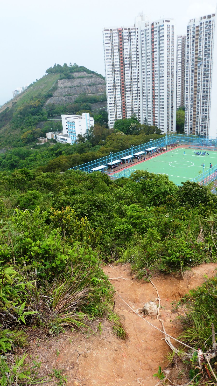 從利東邨巴士站黃色站長室背後的山坡,